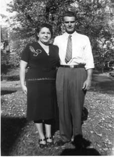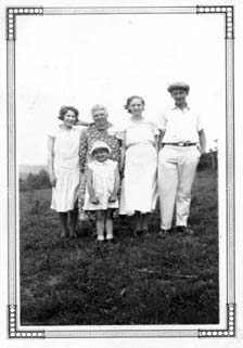 | Mary Szirbek (Wagner), mother Julianna, Theresa Szirbek Nyers, Fred Wagner, and Marguerite Nyers. | Mary Szirbek (Wagner) with her husband Paul Harrop. |